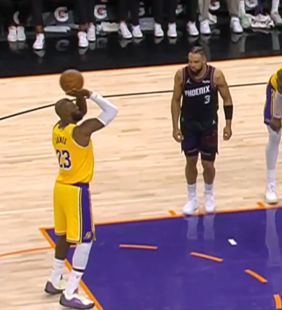 除了杰伦-格林外,太阳最麻烦是太子爷布克也在比赛第三节因伤退赛,慢镜头显示他跑动时踩到奥孔武德脚导致严重崴脚。